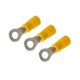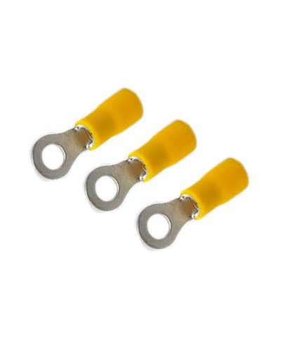 Terminal de compresión de cobre estañado de barril largo. Tiene una capacidad de corriente de 35 KV y las distancias entre los centros de los agujeros es de 25 mm.