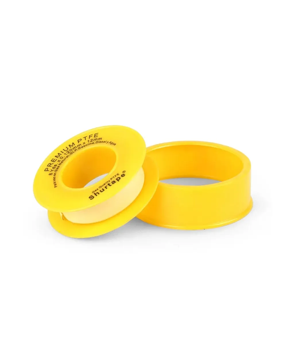 La cinta de politetrafluoroetileno (PTFE) amarilla está diseñada para el sellado de roscas en instalaciones de gas, proporcionando una unión segura, hermética y resistente a fugas.