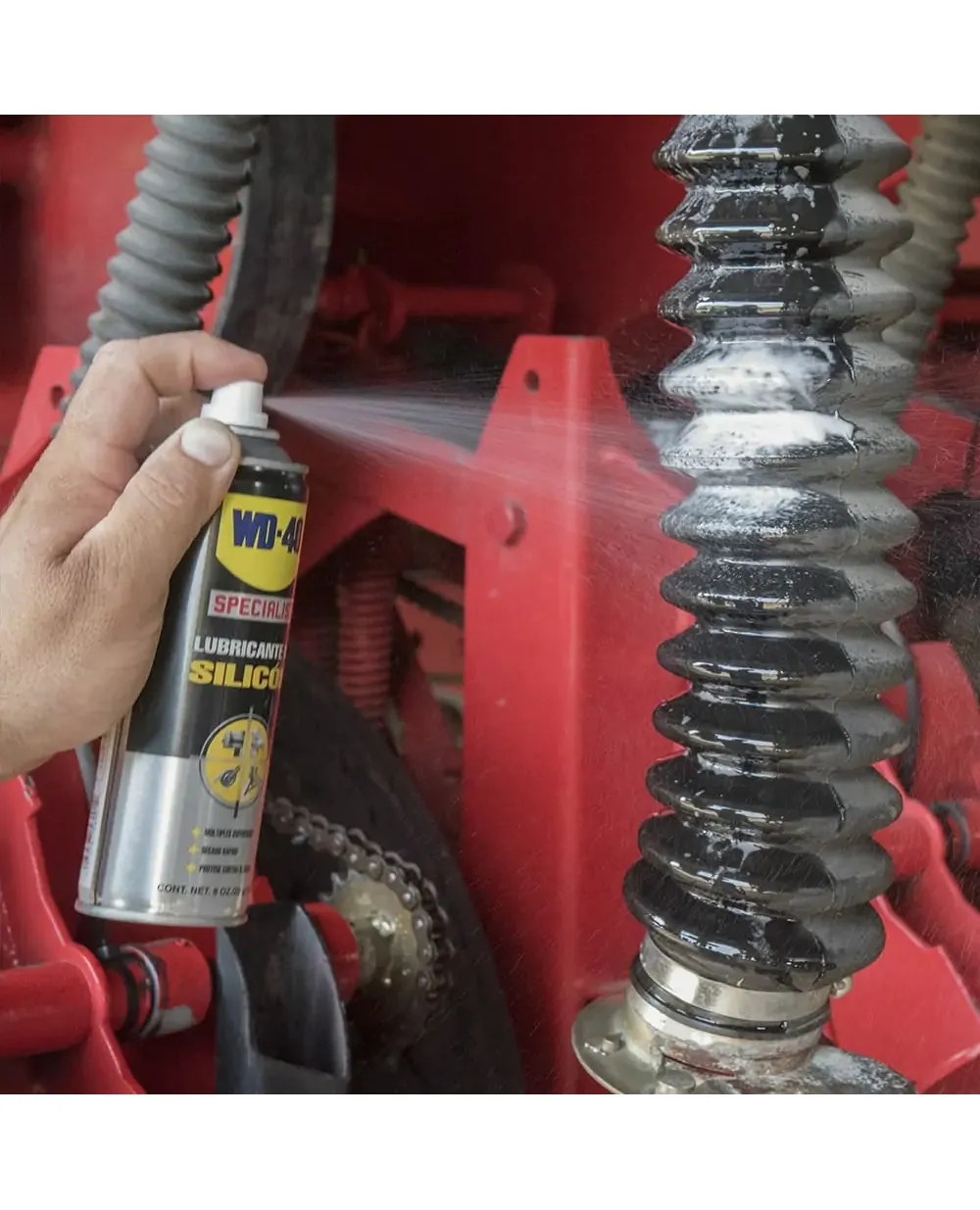 El WD-40 Specialist Lubricante de Silicón impermeabiliza y protege de manera segura superficies metálicas y no metálicas como caucho, plástico y vinilo. La fórmula de nuestro lubricante de silicona se seca rápido y deja una película transparente que no mancha, que no se pega ni ensucia, por lo que no atrae la suciedad. Ideal para usar en cables, poleas, rieles de guía, válvulas, varillajes, bisagras, cerraduras y más. Temperaturas efectivas en uso que van desde -100 °F a 500 °F.