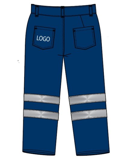 Bordado de logo en la pierna izquierda debajo del bolsillo parte de adelante y bordado de logo en el bolsillo lado izquierdo.
